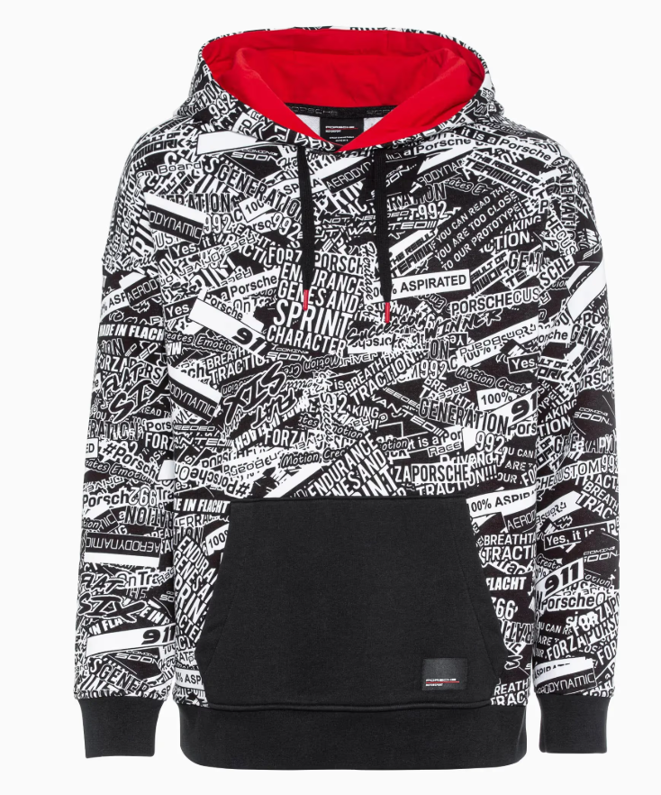 Espírito de corrida, design estiloso e qualidade combinados em uma única coleção – com Motorsport Fanwear. A sweatshirt unissexo destaca‑se habilmente na multidão – com estampa integral inspirada na camuflagem do Porsche 911 GT3 R (992). A etiqueta costurada “Porsche Motorsport” na borda do bolso canguru é um detalhe especial de design que realça o visual desportivo da sweatshirt com capuz. O forro da capuz e os terminais dos cordões em vermelho adicionam toques sofisticados.