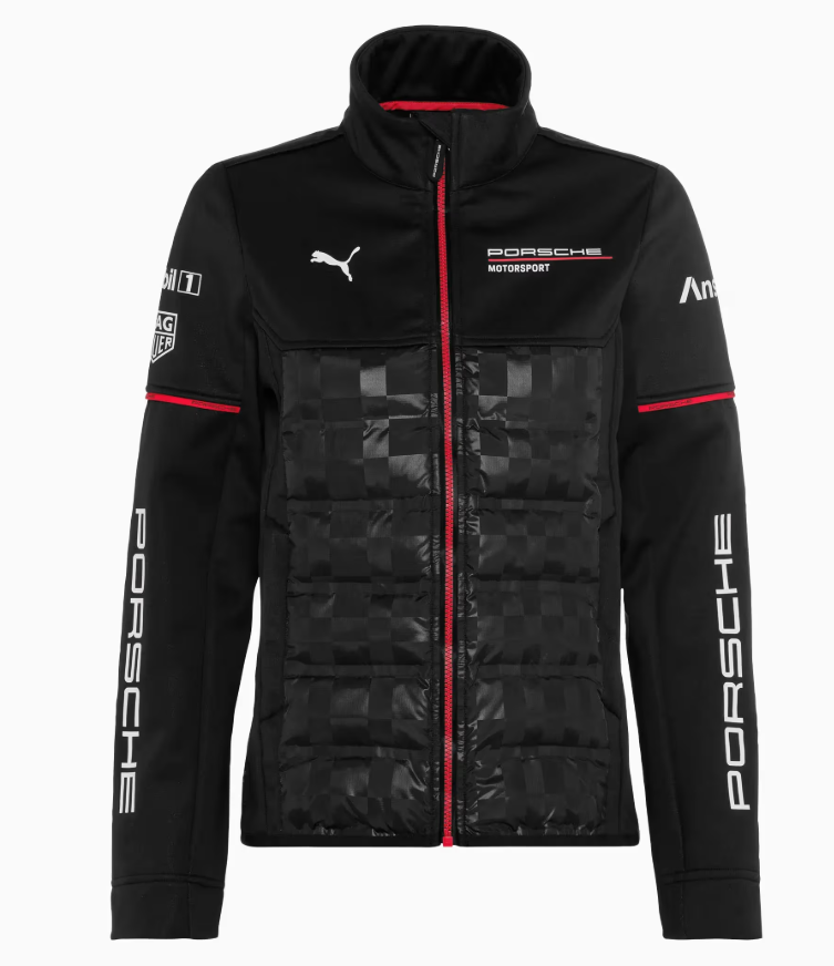 Viva a pura paixão do automobilismo com a coleção „Motorsport Replica” da Porsche e sinta o espírito de equipa nas pistas. Os acentos em vermelho marcantes e o icónico padrão Pascha dos anos 70 combinam a rica história da Porsche com a dinâmica das corridas. A jaqueta softshell feminina, com corte moderno regular fit, combina conforto e estilo ideais graças à combinação de nylon acolchoado e elementos quiltados.