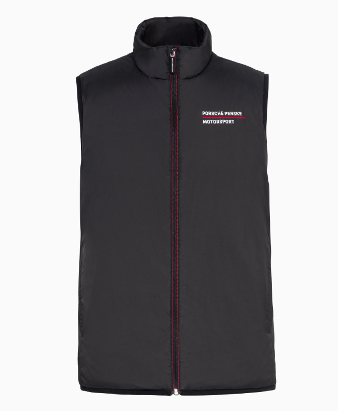 O colete da coleção Porsche Penske Motorsport transmite o espírito de equipa mesmo fora das pistas. Com enchimento leve e forro acolchoado, é ideal para épocas de transição ou para looks desportivos por camadas. O logótipo Porsche Penske Motorsport no peito e o estampado de riscas vermelhas na parte posterior tornam‑no uma peça indispensável para fãs de motorsport.