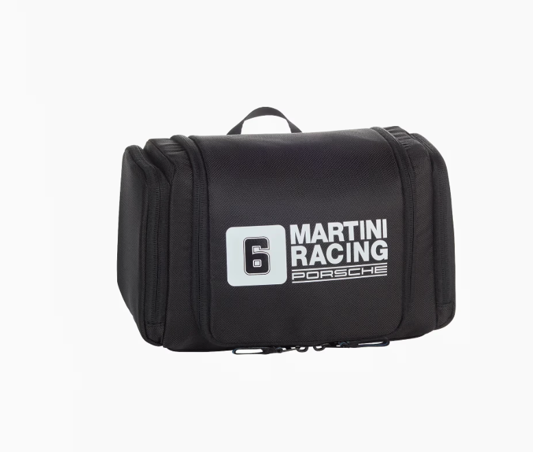 A Necessaire MR Martini Racing da Porsche oferece durabilidade e funcionalidade para suas viagens ou uso diário. Confeccionada em nylon resistente e repelente à água, ela protege seus itens contra umidade e desgastes. Possui um amplo compartimento principal que acomoda diversos produtos, dois bolsos laterais com zíper para organização extra, além de um compartimento especial para itens úmidos, garantindo praticidade e limpeza. A base reforçada oferece estabilidade, enquanto a alça para transporte e gancho para pendurar facilitam o manuseio. O design elegante destaca as icônicas listras e logotipos Porsche + MARTINI RACING, agregando estilo e personalidade.