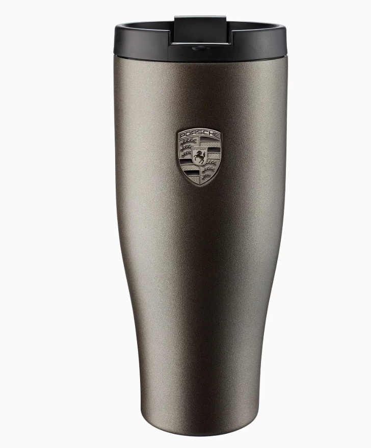 Desempenho elevado para acompanhar você: este copo térmico Porsche de parede dupla é completamente à prova de vazamentos e mantém bebidas quentes aquecidas e frias resfriadas. O corpo é decorado com o escudo Porsche, e a tampa traz a inscrição “Porsche” em relevo. A pintura em pó robusta torna o copo muito durável — ideal para uso intenso.Vem em embalagem refinada, sendo um presente perfeito para fãs da marca.Tem capacidade de aproximadamente 900 ml, ideal para viagens ou longos trajetos.